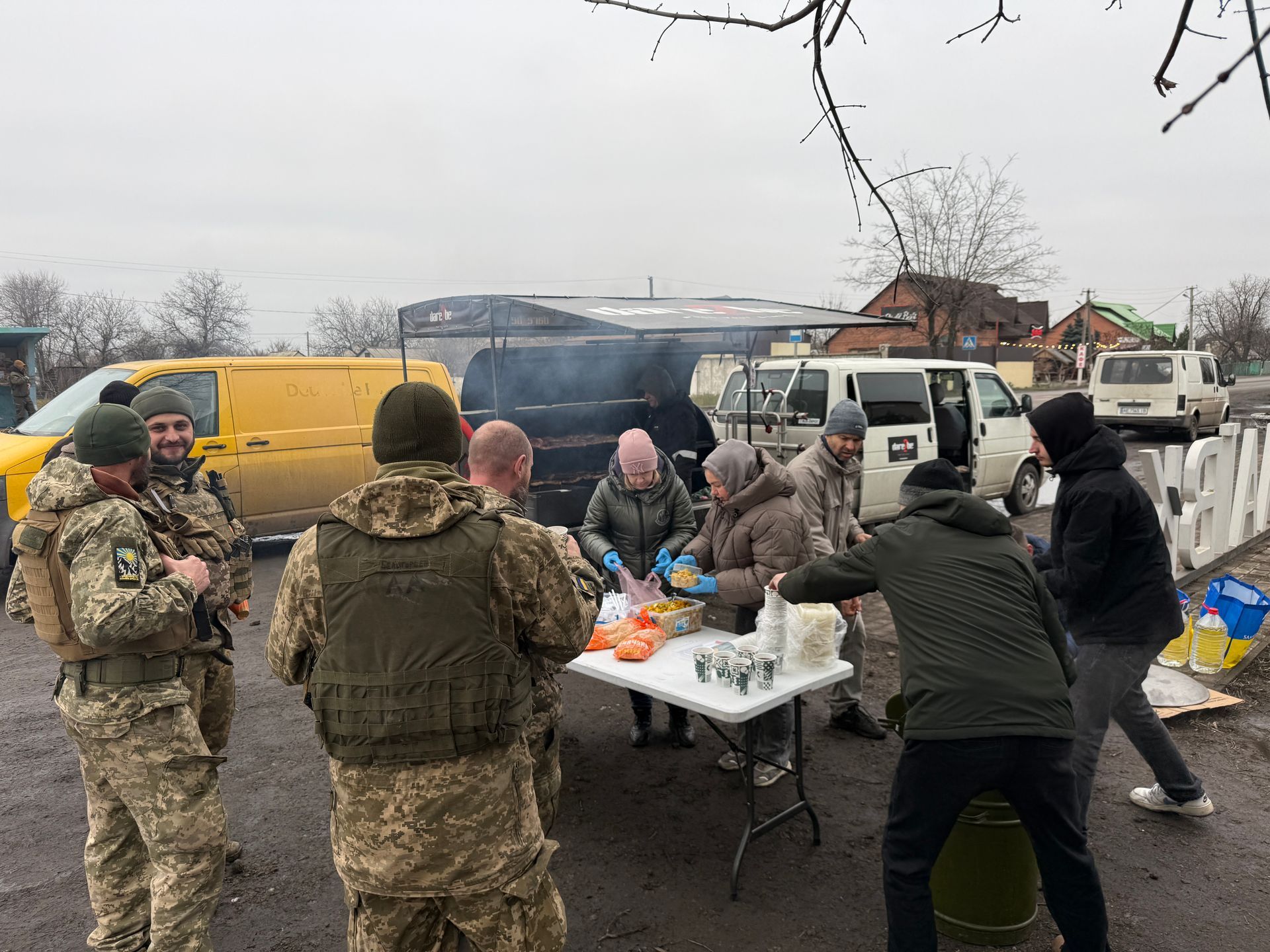 Vi har hatt en to dager i nærheten av Prokrovsk. En av den sto vi langs veien og grillet for soldater som kom forbi, den andre dagen reiste vi langt inn i et øde område, der vi fikk være sammen med en gruppe soldater i leiren deres. Med streng beskjed om å fjerne lokasjons muligheten på mobilene våre, så vi ikke skulle kunne spores.
