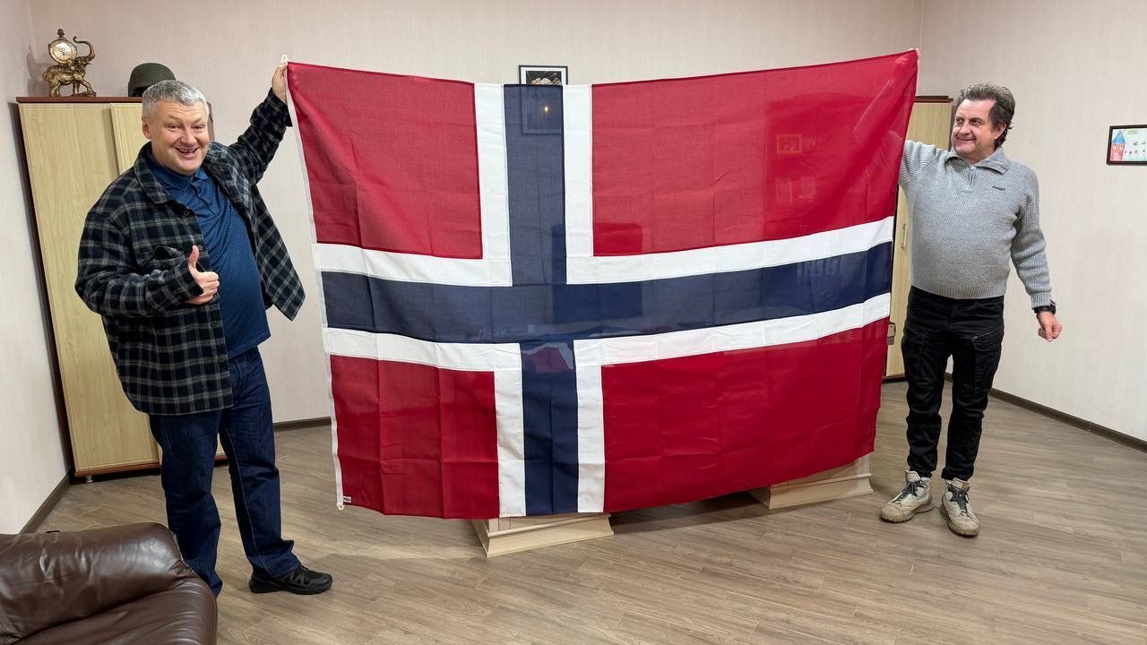 Vi fikk være med på møtet, der flere av oss deltok. Helge talte og et stort norsk flagg var oppe.