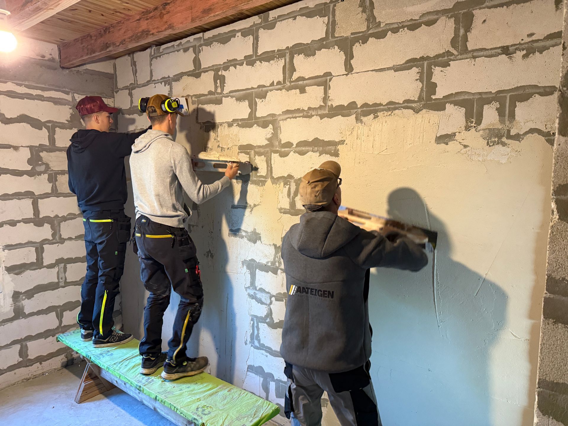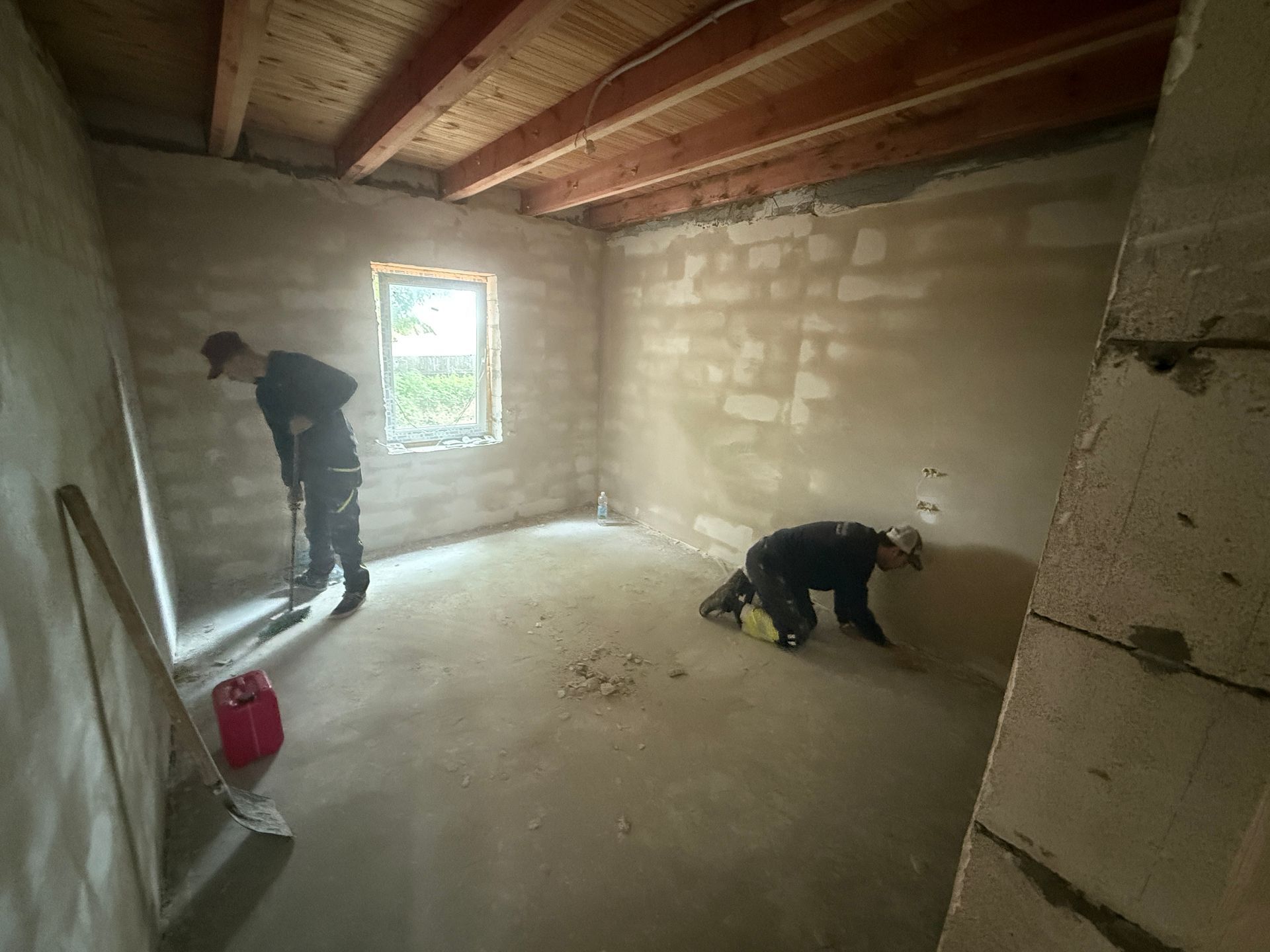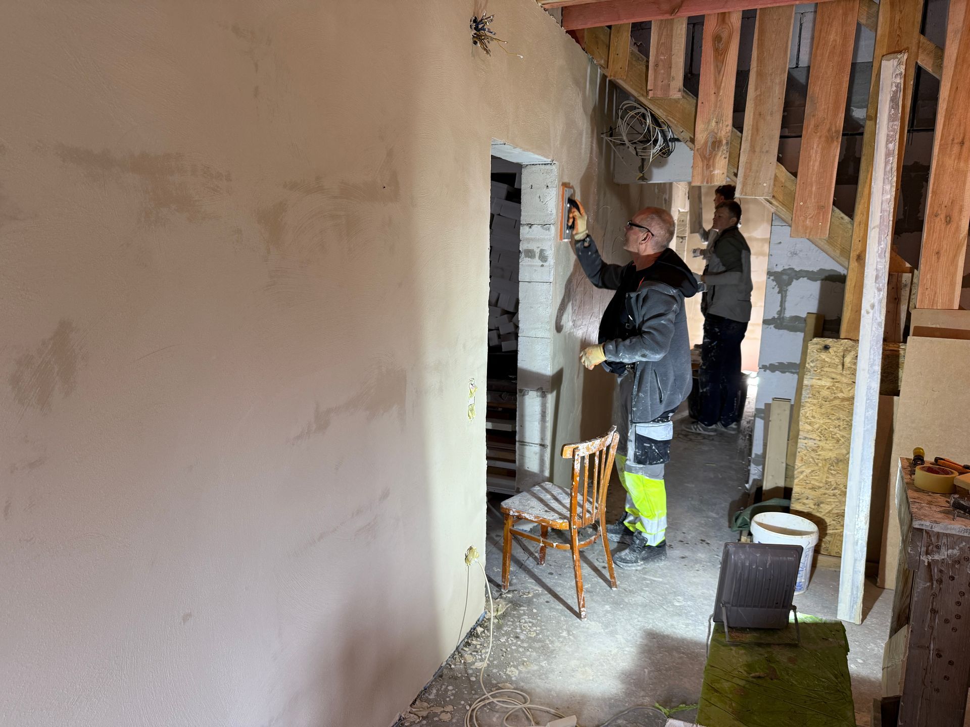 Etter noen timer med søvn, i to rom som var gjort klart for oss, var vi på mandagen i gang med å pusse vegger i første etasje. Noen var nok litt opptimistiske og tenkte at det skulle bli tid til litt forskjellige ting på ettermiddagen, men med et team som var klar til å gjøre så mye som mulig på kort tid, var det arbeid frem til solen gikk ned og mørket senket seg.