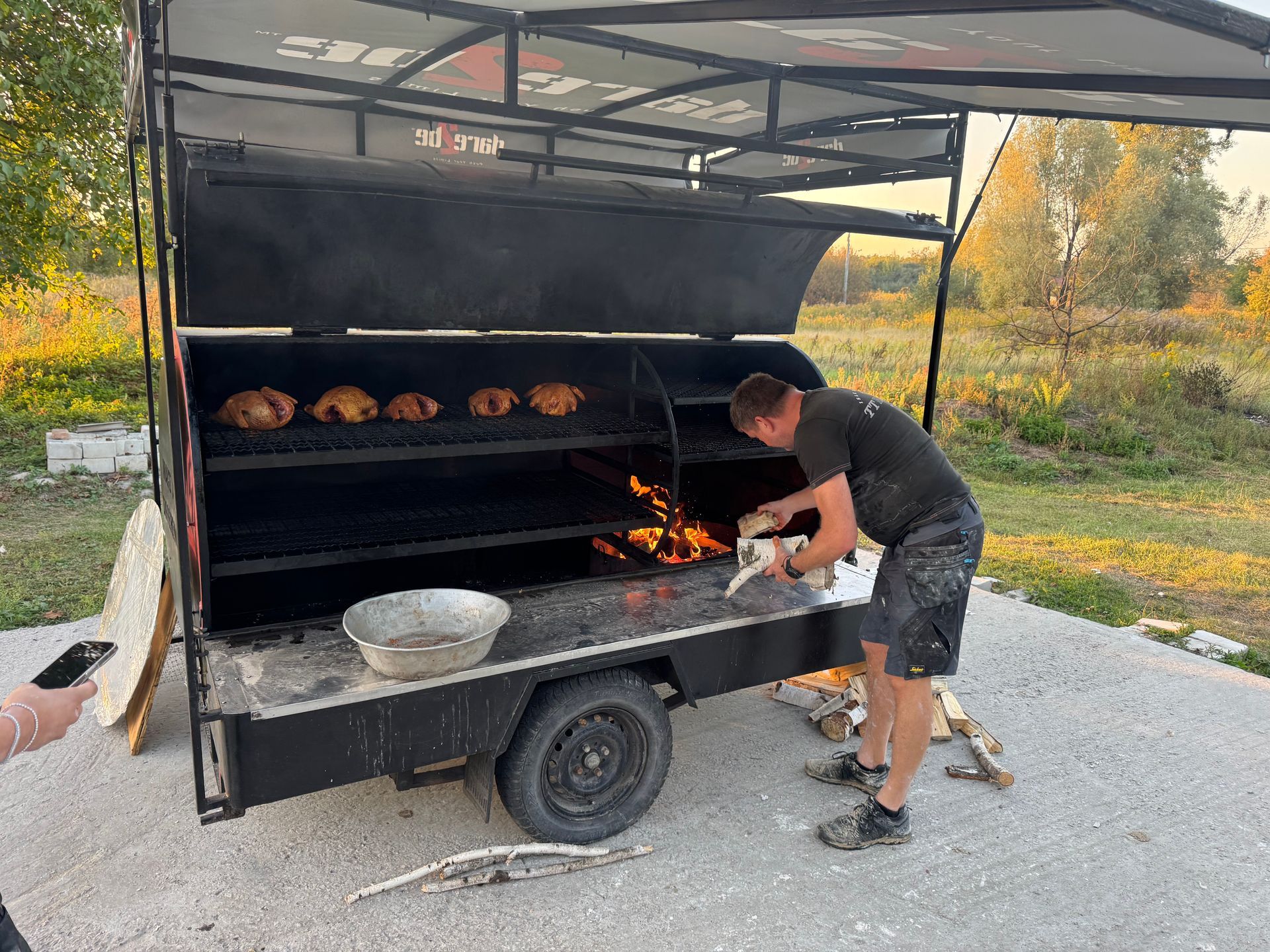 Noe annet som fort kunne blitt en utfordring er jo maten, men med gode griller, masse friske selvdyrkede grønnsaker, oppdrett av ender og en nabo med sauer, ble heller ikke dette et problem, selv om vi alle var enige i at å komme inn til Kyiv, få ei natt på hotell og en tur på en god resturant var en gullerot vi virkelig så fram til etter fire dager med enkle forhold.