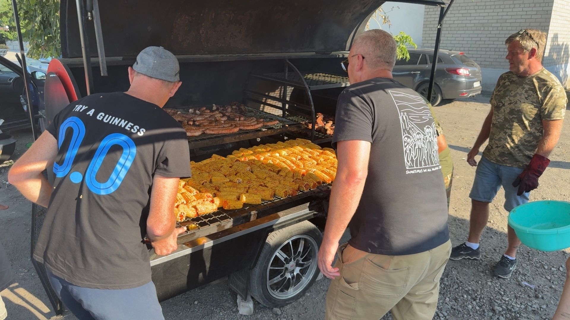 I sommer har vi kjøpt en smoker i Ukraina. Med denne kan vi lage mat til 300 personer sammtidig, og det har vi benyttet forskjellige steder Øst og sentralt i Ukraina.