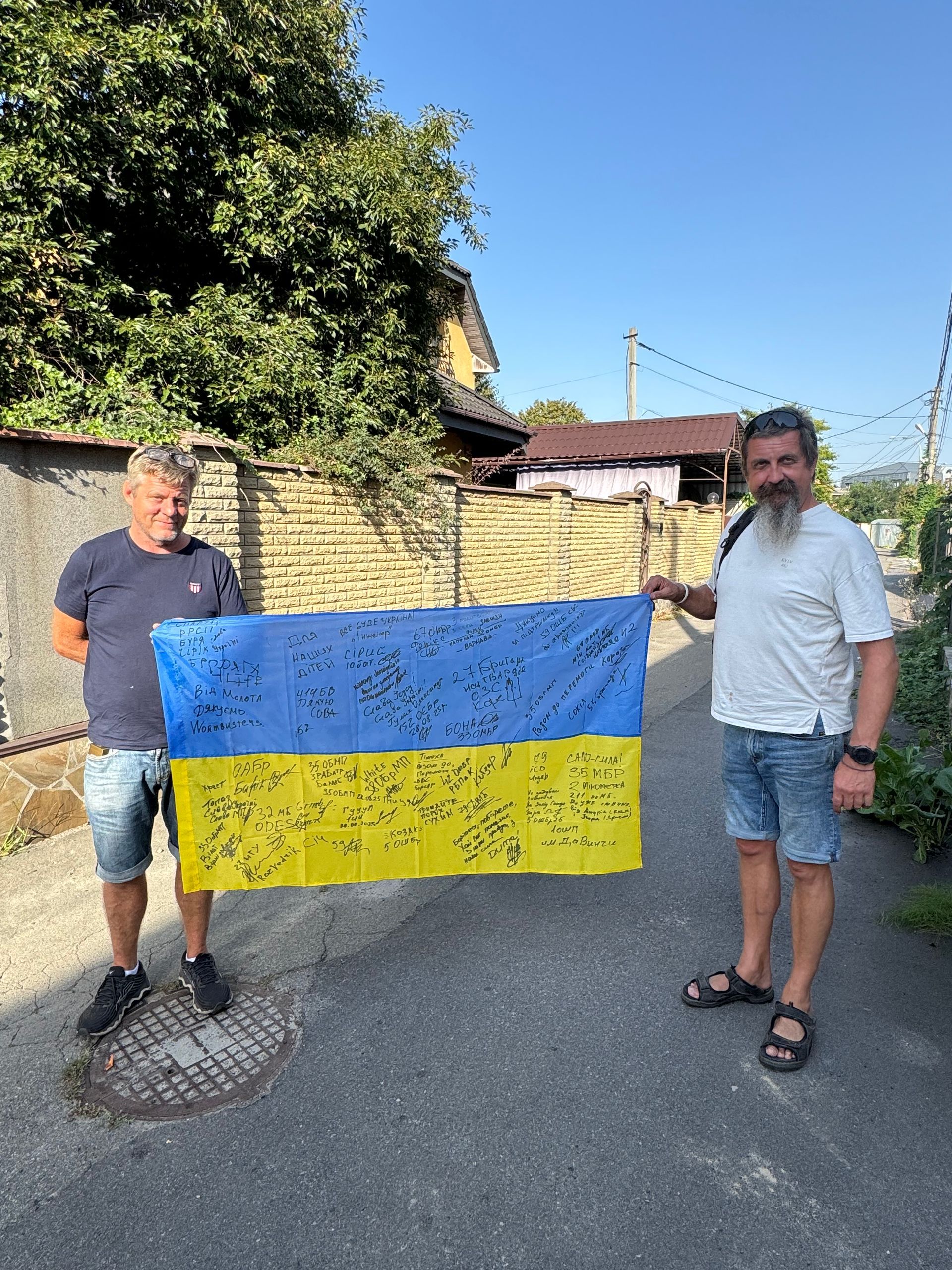 Vi fikk med oss et Ukrainsk flagg hjem som mange av soldatene signerte. Et lite minne fra noen av alle de menneskene vi fikk være sammen med. Noen uten erfaring, på vei ut til noe helt ukjent og skremmende. Andre erfarne soldater, ja, en av dem hadde til og med utmerkelsen Helt av Ukraina, som er den Størset utmerkelsen man kan få her nede. De som kjemper langs fronten er vanlige mennesker, forskjellige på alle måter, akkurat som alle oss andre hjemme. Vi er skapt unike, ikke to av oss er like. Men sammen...