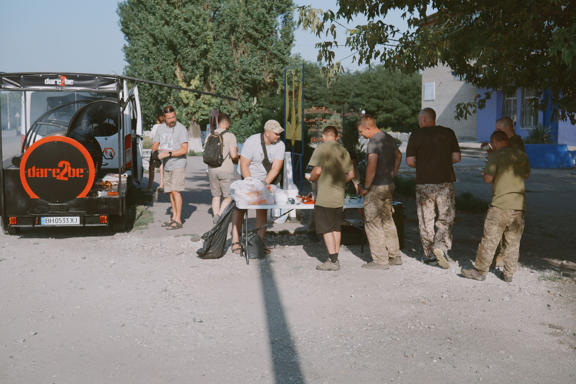 I slutten av August var Steinar Egeland og Helge Flatøy fra Dare2be sammen med Sam, fra Jesus Mission tilbake i Pavlograd. Over flere dager var det fokus på soldater på vei til fronten. Vi kjørte da sammen med lokale kirker ut så nærme vi kunne, hvor det stort sett bare var soldater på vei til og fra fronten i Prokorovsk, Donetsk, som kjørte forbi.